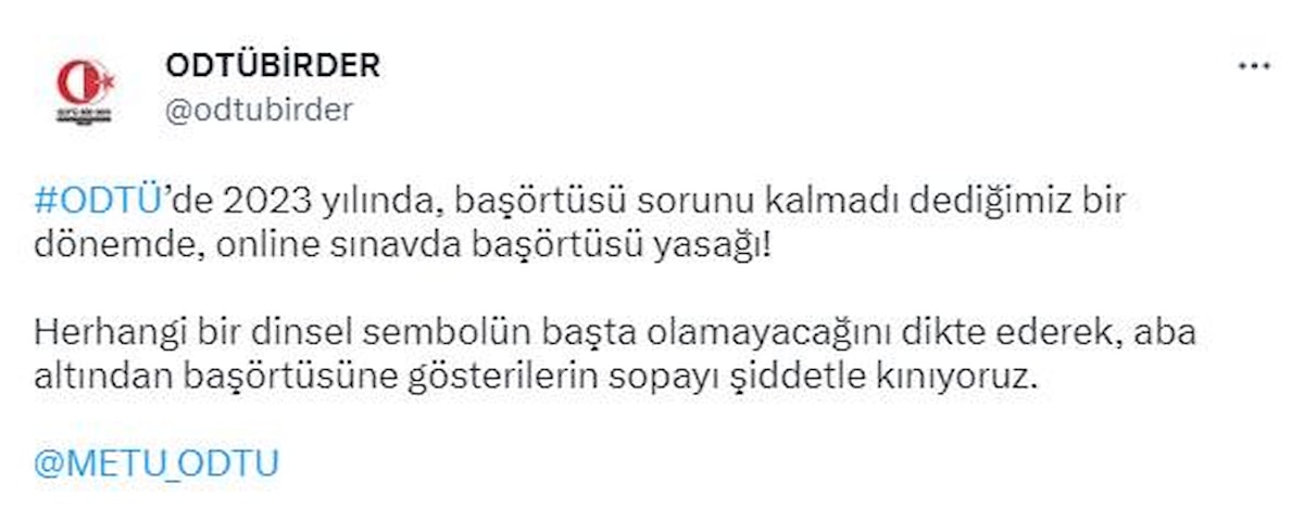ODTÜ'de 2023 yılında, başörtüsü sorunu kalmadı dediğimiz bir dönemde, online sınavda başörtüsü yasağı!