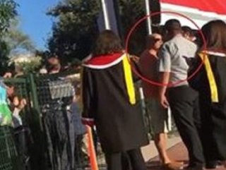 Bu sırada iddiaya göre mezuniyet alanına girmek isteyen öğrenci yakını güvenlik görevlileriyle tartıştı. Güvenlikçilerden biri tartışma sırasında bir kişiye kafa attı. Hürriyet'ten Nurettin Kurt'un haberine göre, o öğrenci yakınının CHP Antalya Milletvekili Deniz Baykal'ın oğlu Prof. Dr. Ataç Baykal olduğu ortaya çıktı.