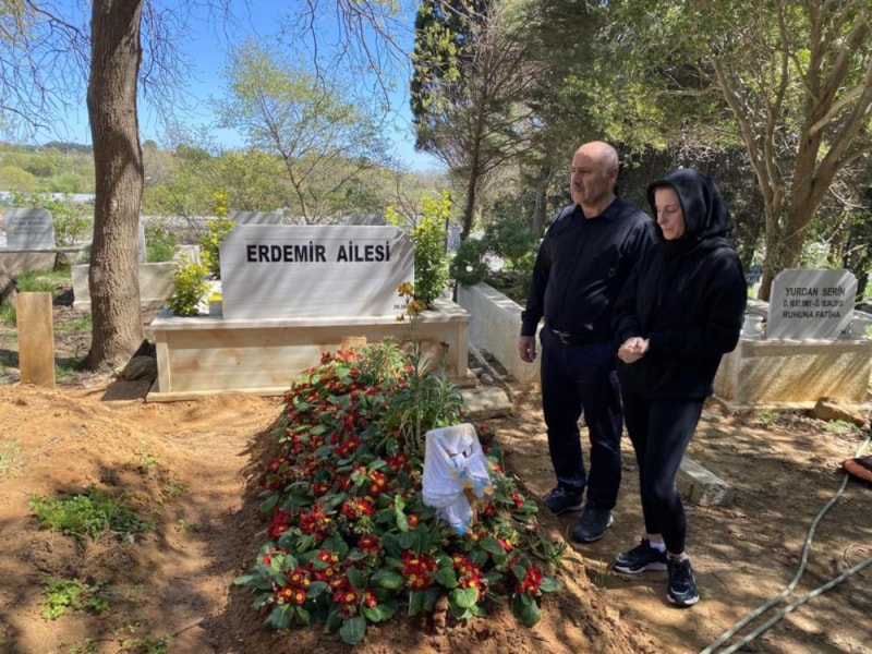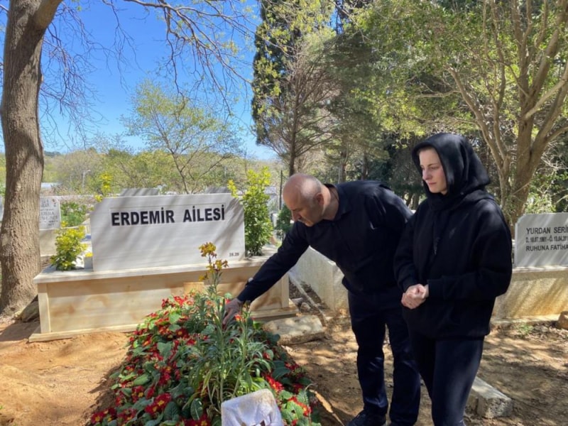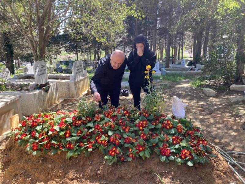 Acılı eş Şükriye Aci ve baba Özer Aci Ramazan Bayramı öncesi Oğuz Murat Aci’nin mezarını ziyaret etti.