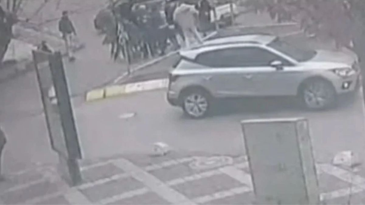 Oktay Derelioğlu'nun eşi Başak Derelioğlu da araçtan inerek kardeşlere saldırıyor.
