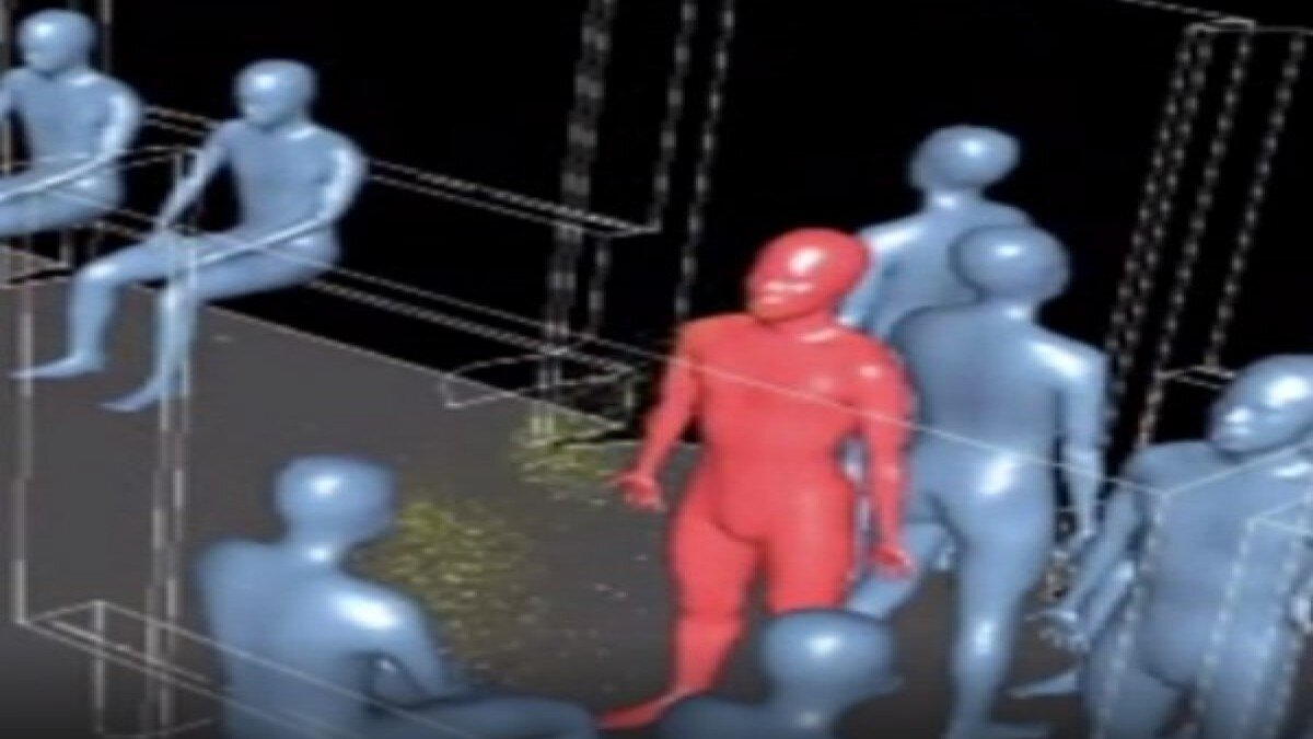 Simülasyonda metroda seyahat eden bir koronavirüs hastasının en ufak bir öksürük veya hapşırmayla çevresindeki 7 metrelik alanda herkese virüs bulaştırdığı görüldü.