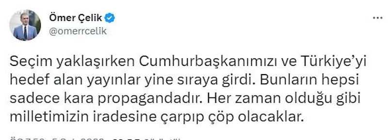 "Seçim yaklaşırken Cumhurbaşkanımızı ve Türkiye'yi hedef alan yayınlar yine sıraya girdi"
