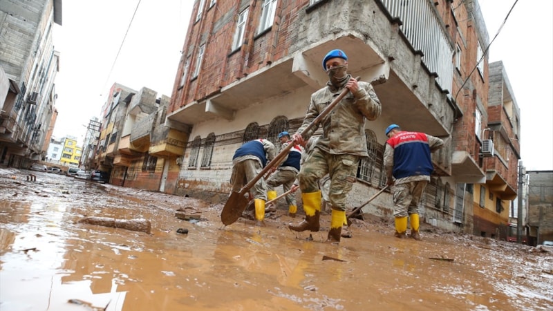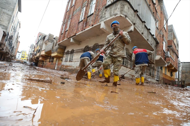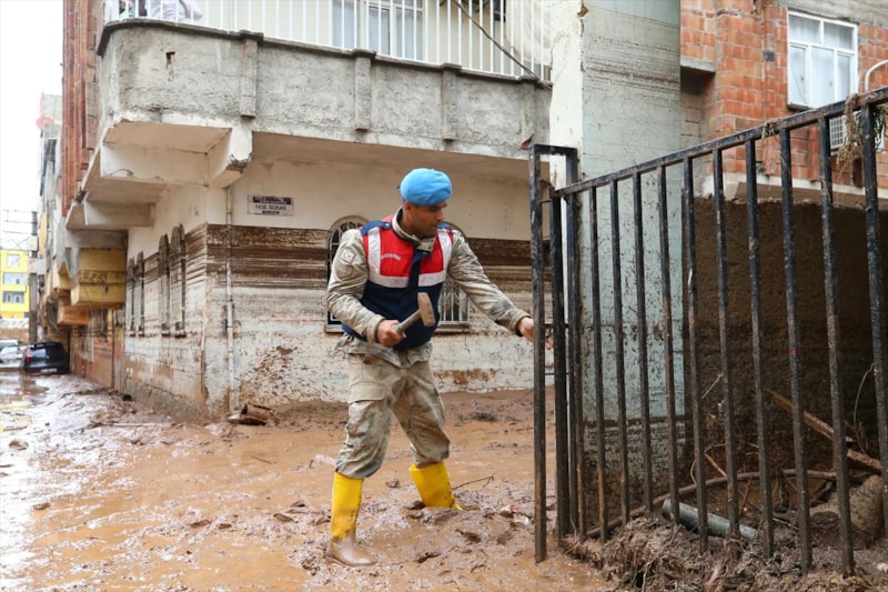 39 gün önce Kahramanmaraş merkezli depremlerle büyük bir felaketi yaşayan kentte Mehmetçik, selin izlerini silmek için mücadele ediyor.