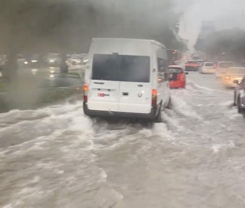 Ana arterlerde yaşanan su taşkınları nedeniyle araçlar, trafikte ilerlemekte güçlük çekti.
