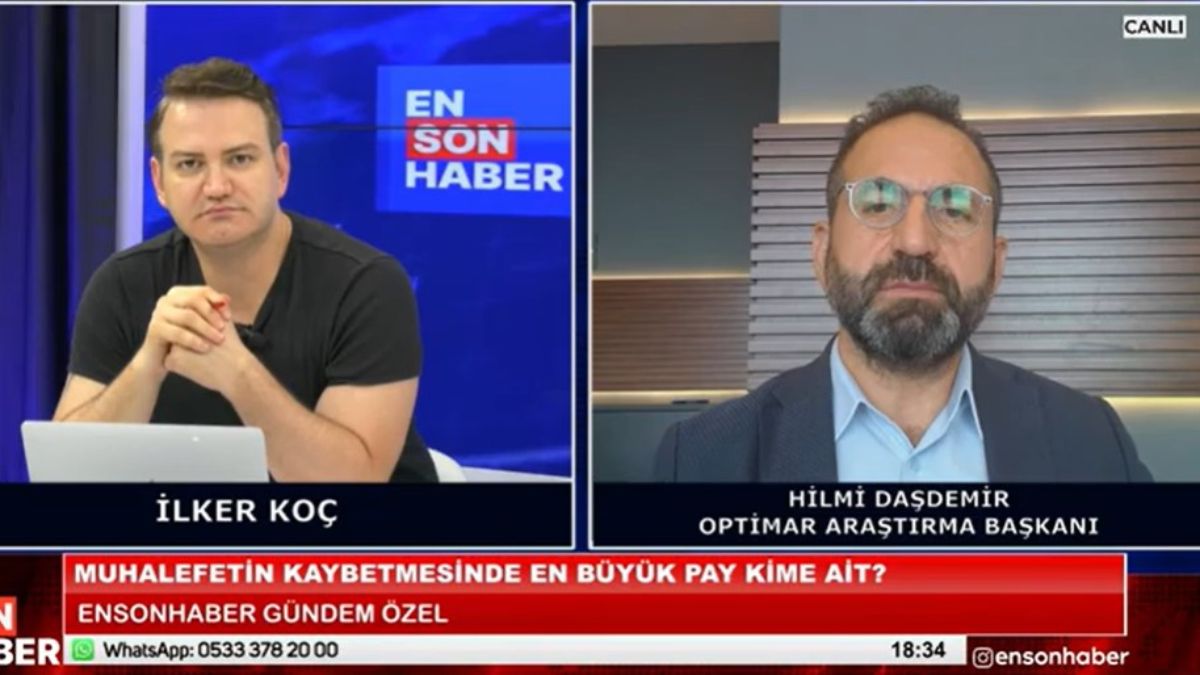 Ensonhaber YouTube kanalında yayınlanan Gündem Özel programına katılan Optimar Araştırma Başkanı Hilmi Daşdemir, yaptıkları son anketin detaylarını paylaştı.