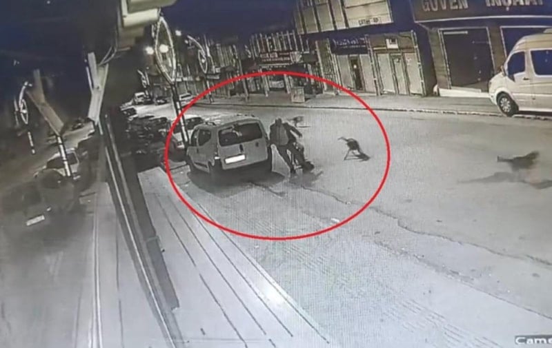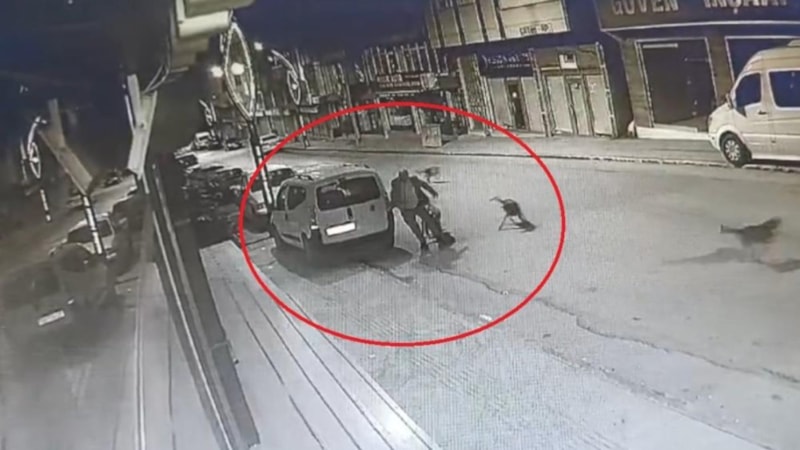 Öte yandan olay anları, bir iş yerinin güvenlik kameraları tarafından kaydedildi.
