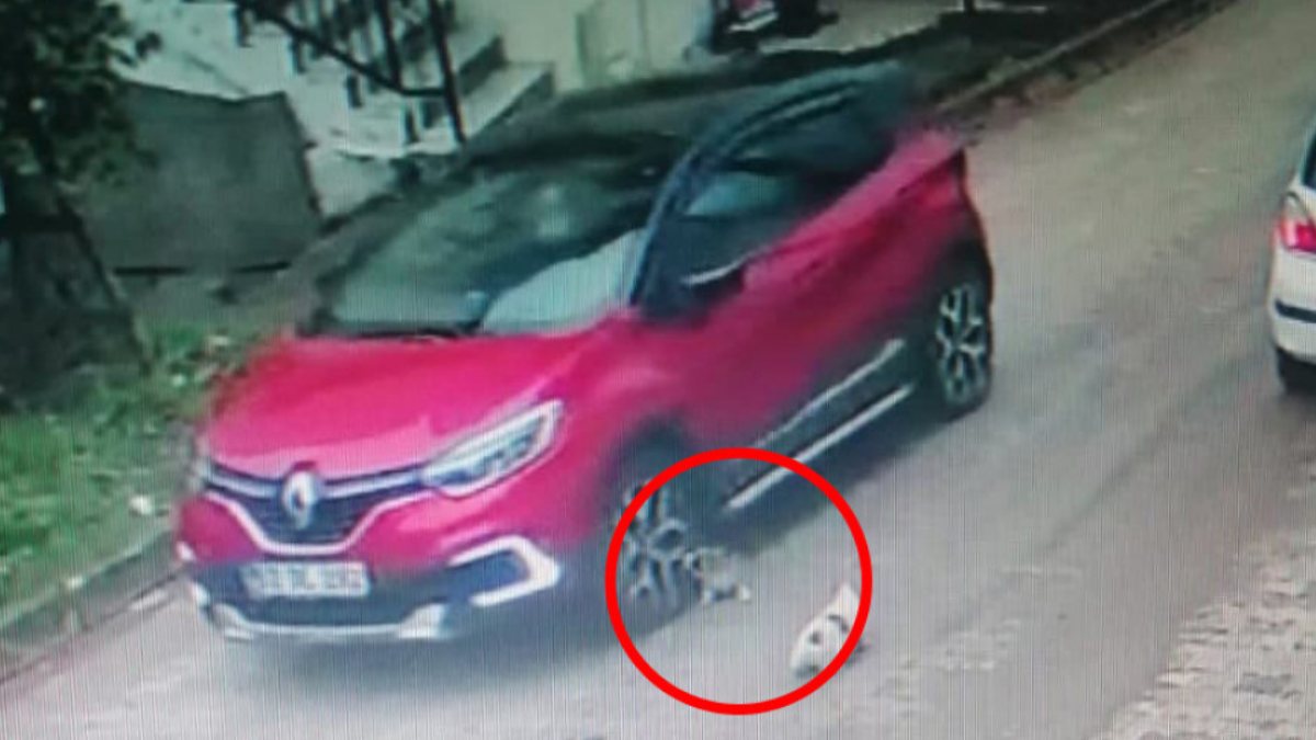 Otomobilin yavru köpeğe çarptığı anlar, bir iş yerinin güvenlik kamerasına yansırken, sürücünün yakalanması için çalışma başlatıldı.