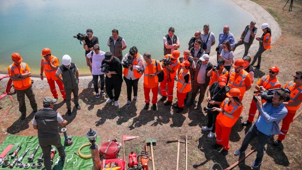 Yangın söndürme çalışmalarında, haber servisi yapan basın mensuplarına da olası durumlarda hem yangından korunma hem de müdahalenin nasıl yapılacağı 1 günlük eğitimle anlatıldı.