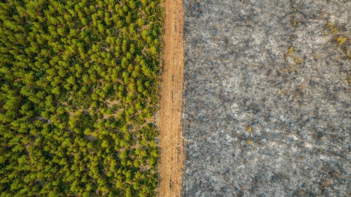 Muğla'nın Menteşe ilçesinde havadan çekilen bir kare, orman yangını sırasında açılan "hayat koridorunun" önemini gözler önüne serdi.