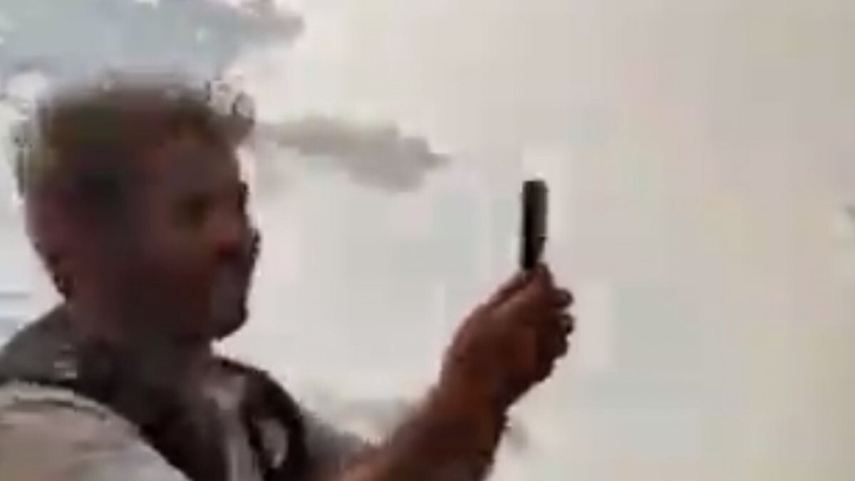 Orman yangınına müdahale etmek için TOMA’larla gelen polis ekiplerini bir ormancı kayda aldı.