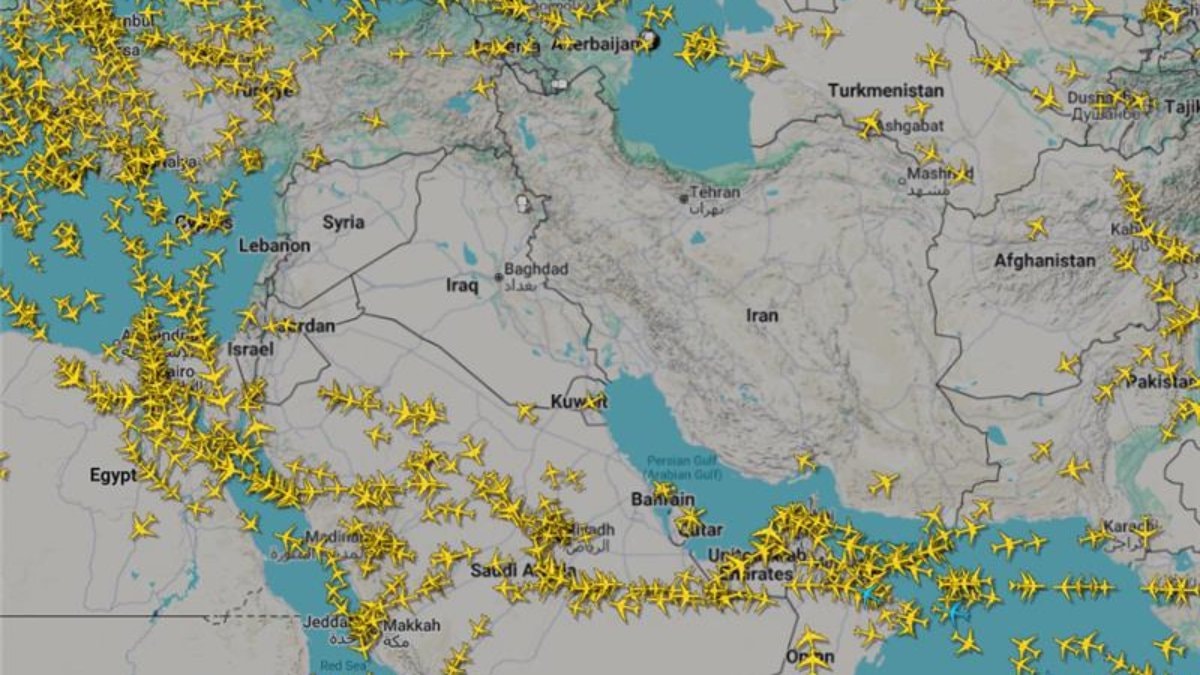 Son gerçekleştirilen saldırılar sonrası Orta Doğu'ya ait hava sahasının anlık görüntüsü kısa sürede gündem oldu.