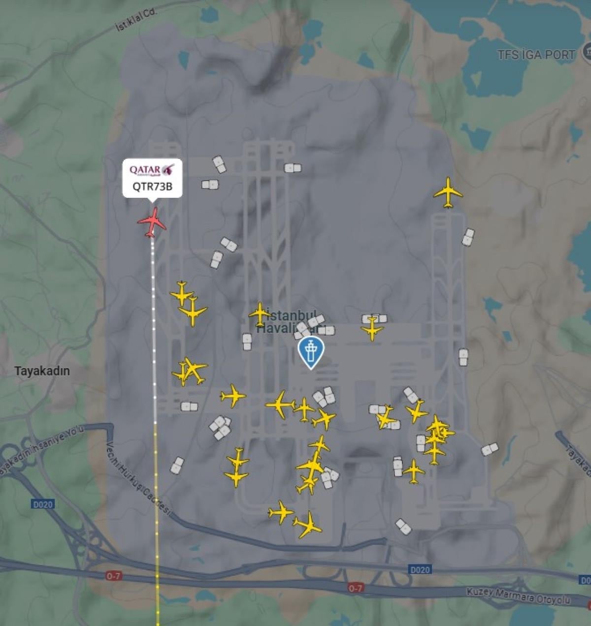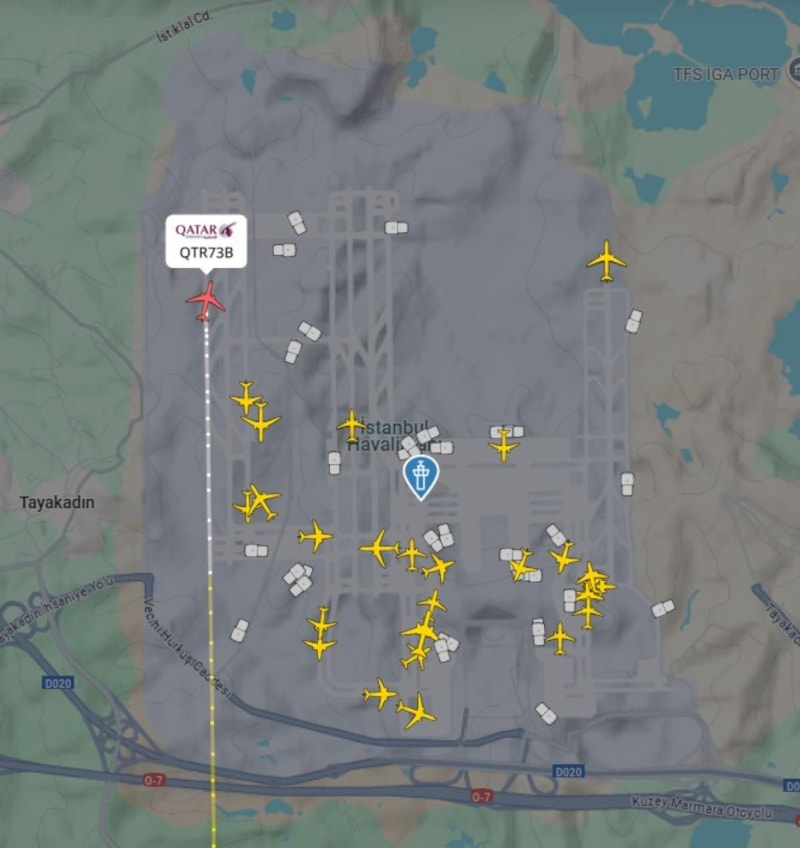 İstanbul Havalimanı'na Doha'ya giderken yön değiştiren 5 uçağın iniş yaptığı ve bu sayının gece saatlerinde artacağı öğrenildi.