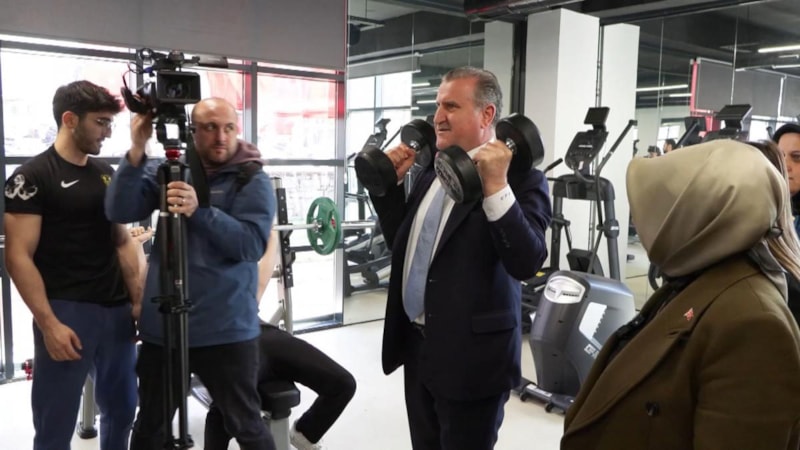 Törenin ardından salonu gezen Bakan Bak, spor aletlerini de denedi.