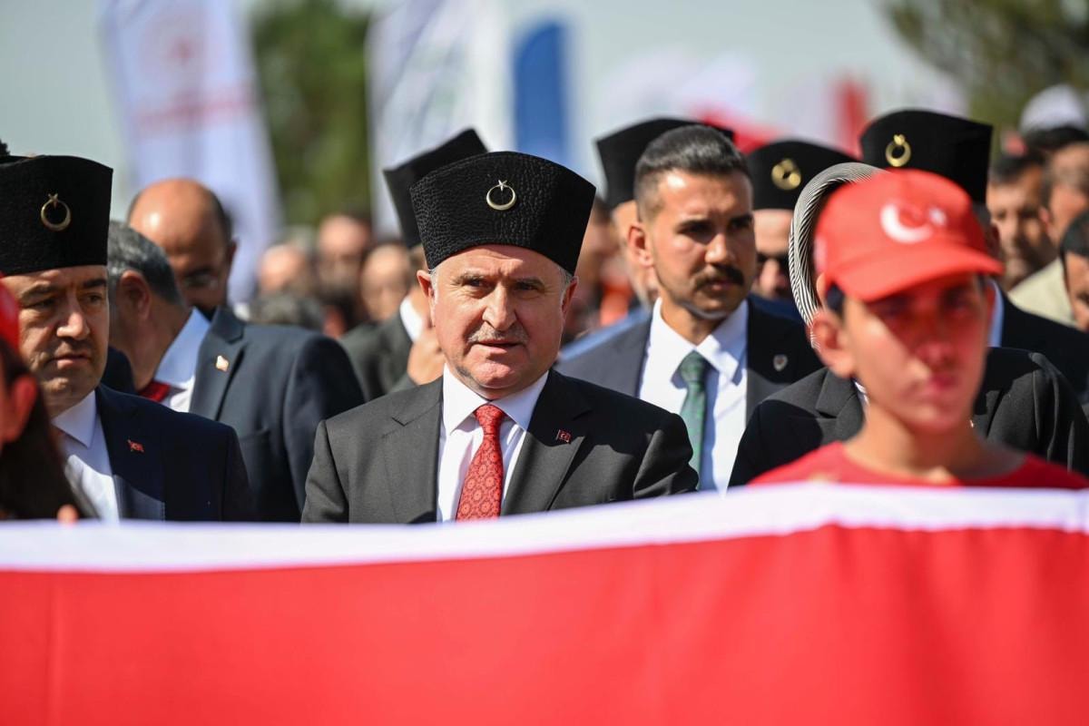 Zafertepe Abidesi’ndeki çelenk töreninin ardından Bakan Aşkın Bak ve beraberindekiler kortej eşliğinde törenlerin yapılacağı alana kadar yürüdü.