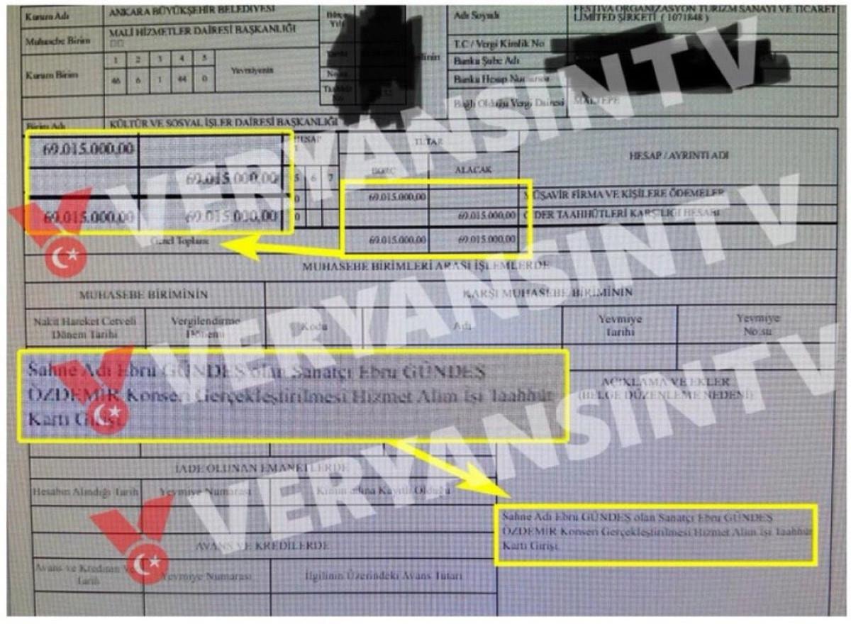 Ankara Büyükşehir Belediyesi'nin, 29 Ekim Cumhuriyet Bayramı kutlamaları kapsamında düzenlenen Ebru Gündeş konserine 69 milyon TL ödediği iddia edilmişti.