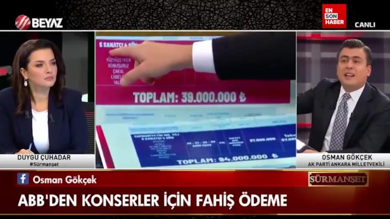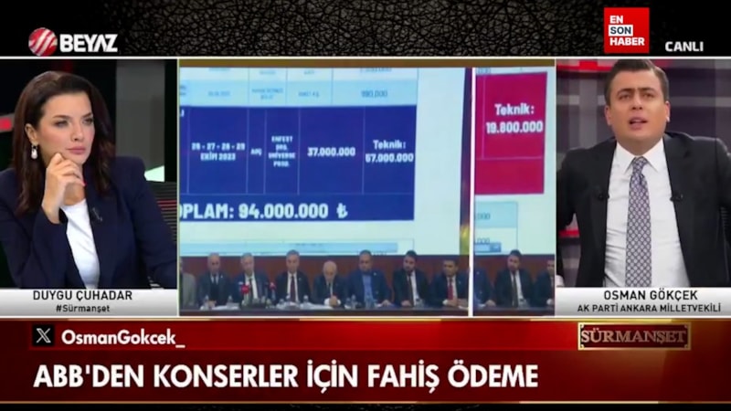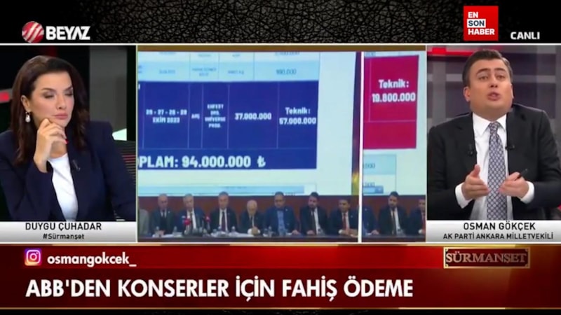 AK Parti Milletvekili Osman Gökçek, ABB'nin tartışılan konser ihaleleriyle ilgili yaptığı açıklamada 'teknik ücretin' 3 ay içinde 19 milyon TL'den 57 milyon TL'ye nasıl çıktığını sordu. Gökçek, "Ne para götürmüşsünüz be! 19 milyon para nasıl oldu da 57 milyona çıktı?" dedi.