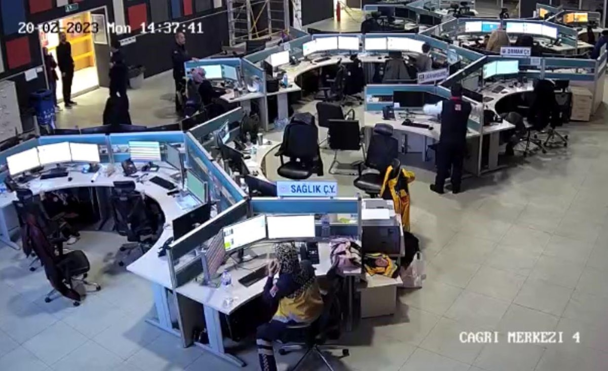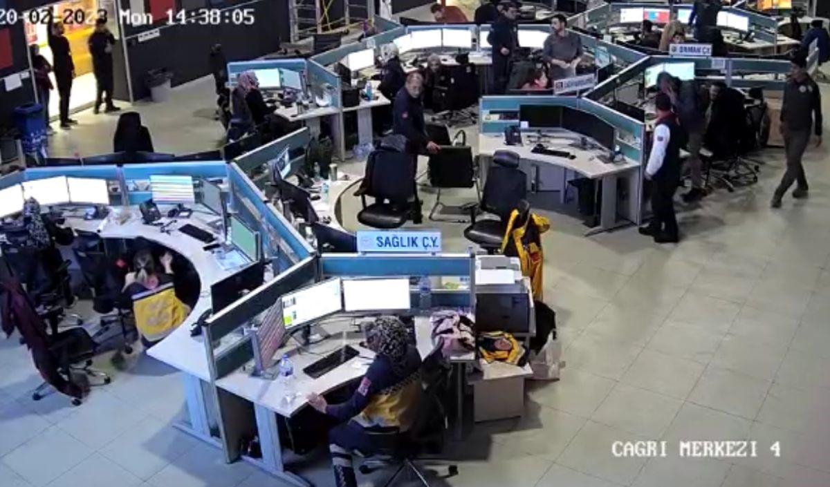 İlk depremlerde olduğu gibi Hatay depreminde de 112 Acil Çağrı Merkezi'nde görevde olan personellerin sarsıntı anında görev yaptığı görüntüler ortaya çıktı.