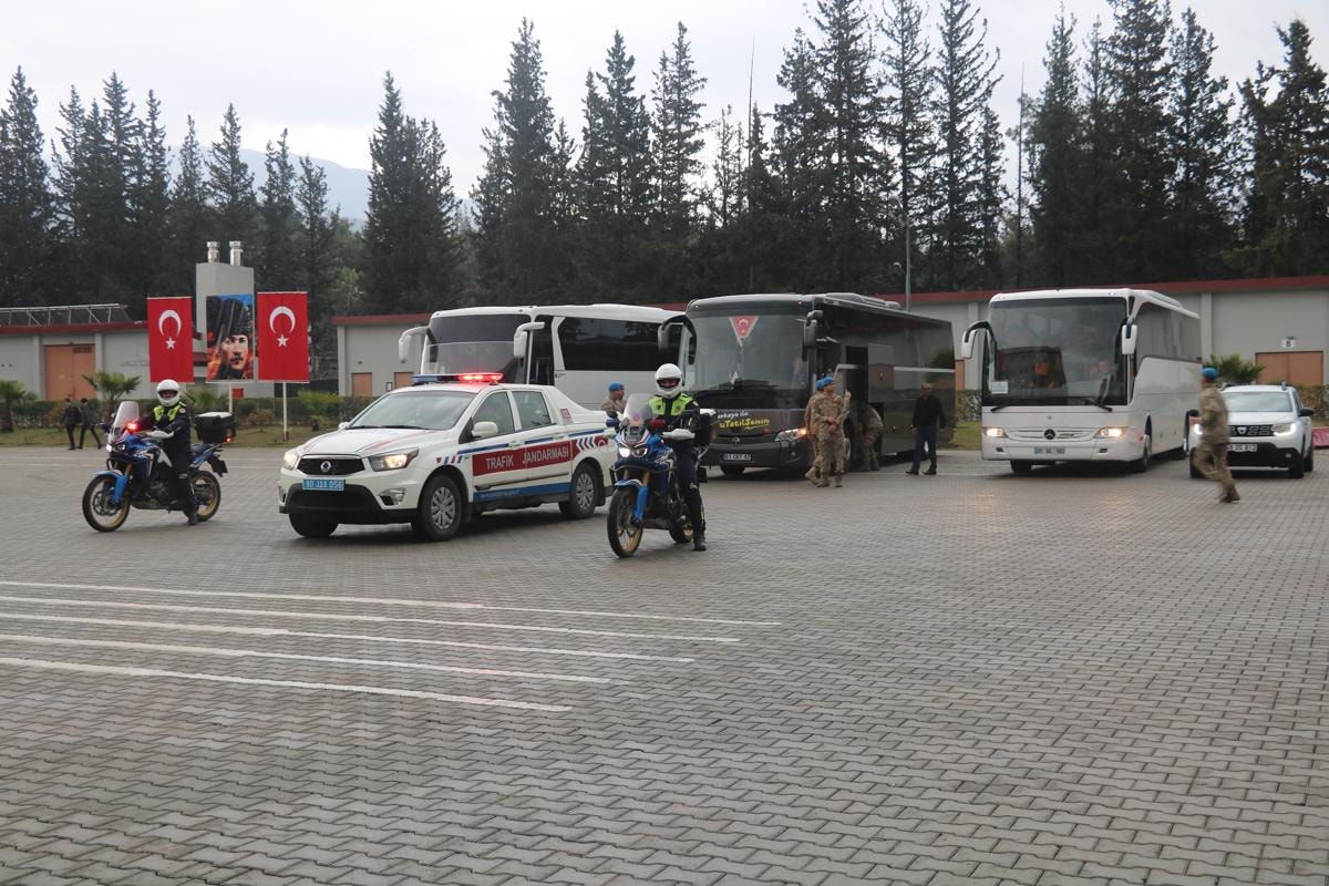 Jandarma komandolar, yapılan duanın ardından araçlarla birliklerine uğurlandı.
