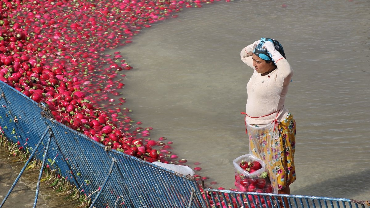 Osmaniye'nin Kadirli ilçesinde turp üretiminin yüzde 70'inin karşılandığı Savrun Çayı'nın soğuk sularında depremzede kadınların dayanışması ile üretim sürüyor.