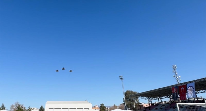 Protokolün halkı selamlamasının ardından Adana'daki İncirlik Üssü'nden kalkan 152. Filo Komutanlığına bağlı F-16'lar, stadyum üzerinde yakın mesafeden kol uçuşu gerçekleştirdi.