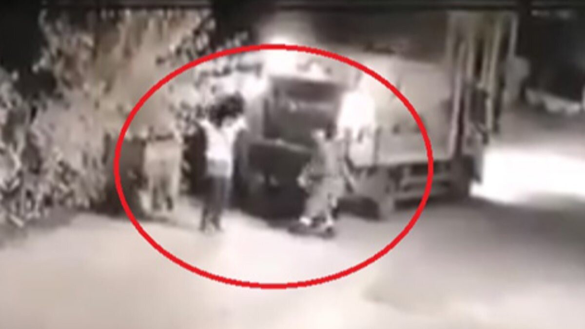 Renkli görüntüler, çevredeki bir iş yerinin güvenlik kamerasına yansıdı.