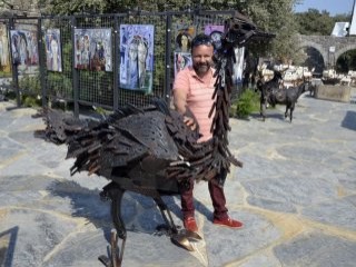 Bodrum'daki hurda satışı yapılan yerleri gezen ve buralardan atık araç malzemeleri toplayan sanatçı, bu parçaları sanat eserine dönüştürüyor. Yaptığı çalışmaları AA muhabiriyle paylaşan Koçak, geri dönüşüm malzemelerinden yaptığı heykellerin kendisine büyük keyif verdiğini söyledi.