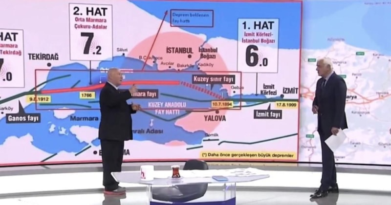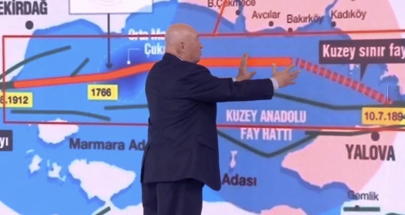 1999 Gölcük depreminde 132 atom bombası gücünde Marmara bir gerginlik boşalttı. Şimdi kese boş. Tekrar Marmara'nın gerginlik biriktirmesi için 26 yıl yetmez. Çünkü gerginlik belli bir oranda doğudan batıya doğru şu şekilde kaktırıyor bu bölgeyi." dedi.