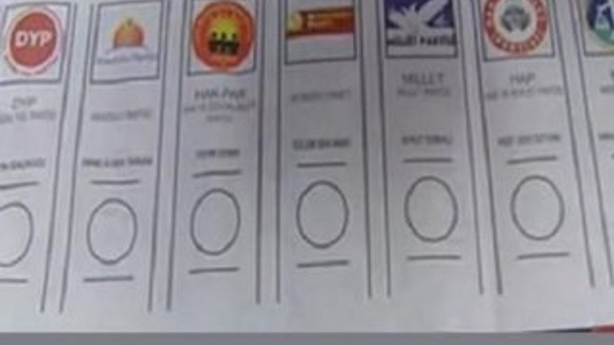 Hazırlanan oy pusulalarında, ilk sırada Doğru Yol Partisi, son sırada ise Bağımsız Türkiye Partisi var; ancak asıl yarış pusulanın ortasında yaşanacak. 11. sırada MHP, 12. sırada HDP, 14. sırada CHP ve 15. sırada ise AK Parti yer alıyor.