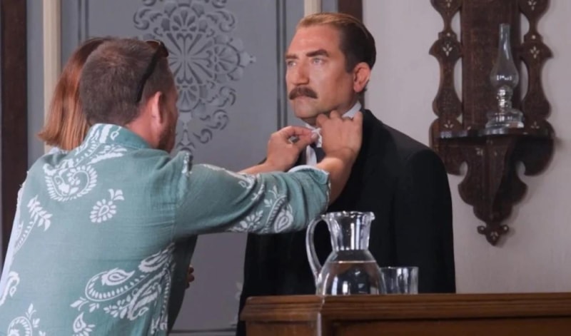 Heykeltıraşlık tekniğiyle kalıp çıkarma, silikon ve protez parçalarla kalıbı oluşturma, boyama, aksesuarların hazırlanması gibi süreçleri kapsayan makyajın hazırlık aşamasının 6 hafta sürdüğü öğrenildi.