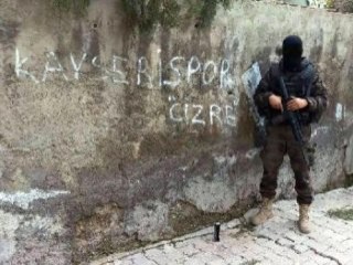 Güneydoğu'da terör operasyonları devam ederken, sosyal medyada bir özel harekat polisinin, 'Kayserispor Cizre' yazılı duvar önünde çektirdiği fotoğraf ilgi çekti.