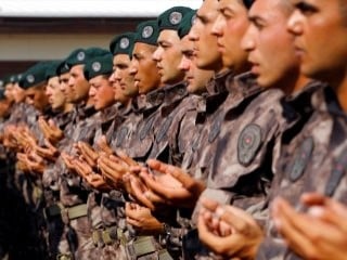 Törenle diplomalarını alan özel harekat polisleri hep birlikte dua etti. Özel harekat polislerinin aileleri de törene katılarak çocuklarının yanında oldu.
