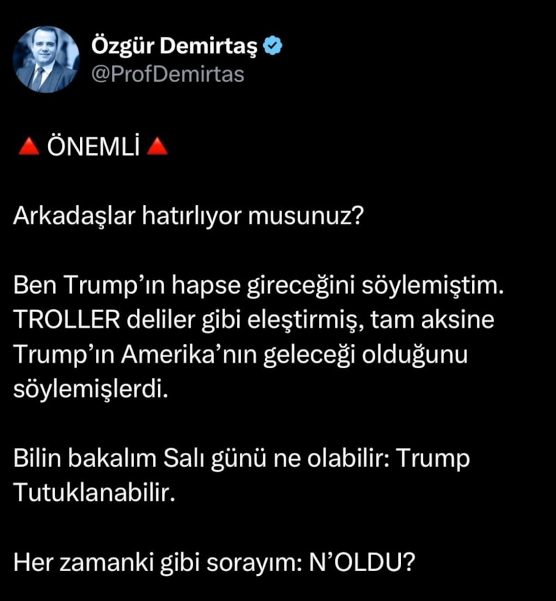Özgür Demirtaş’a göre Donald Trump hapse girecekti..