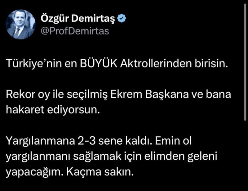Özgür Demirtaş, zaman zaman sosyal medyada ‘yargılanacaksın’ diye tehditler de savuruyor..