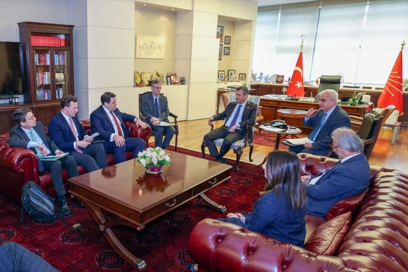 Partiden yapılan yazılı açıklamada, "Cumhuriyet Halk Partisi Genel Başkanı Özgür Özel, Almanya'nın Kuzey Ren Vestfalya Eyaleti Avrupa Birliği, Uluslararası İlişkiler ve Medya Bakanı Nathanael Liminski ve beraberindeki heyet ile CHP Genel Merkezi'ndeki makamında bir araya geldi. CHP Lideri Özel'e CHP Dış Politika Koordinatörü İlhan Uzgel ve Bartın Milletvekili Aysu Bankoğlu eşlik etti." denildi.