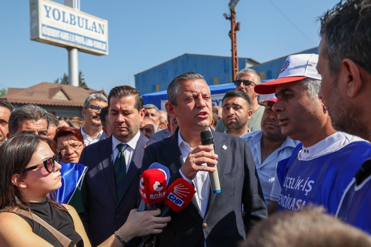 CHP Genel Başkanı Özgür Özel, Hatay'ın Dörtyol ilçesindeki bir firmada çalışan metal işçilerinin grev yaptığı çadırı ziyaret etti.