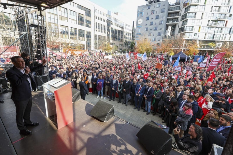 CHP Genel Başkanı Özgür Özel, Belçika'nın başkenti Brüksel'de, Place Jean Rey Meydanı'nda, 'Millet İradesine Sahip Çıkıyor' mitingine katıldı.