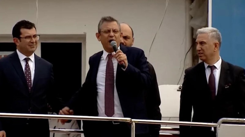 Özel'in, "Tüm dünyadan kaynak bulan, sorunları gören, hızla çözen benim çok güvendiğim bir adayım var. Aday burada Cemil Tugay." derken yanlış eli kaldırması ise dikkat çekti.