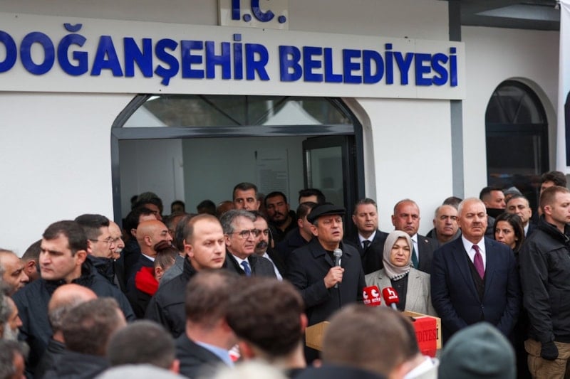 CHP Genel Başkanı Özgür Özel’in Malatya’nın Doğanşehir ilçesinde yaptığı konuşmasında CHP'li belediyelerin deprem bölgesine gönderdiği çöp konteynerlerini tek tek saydı.