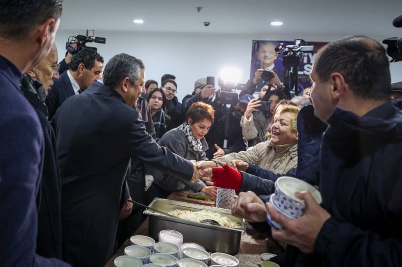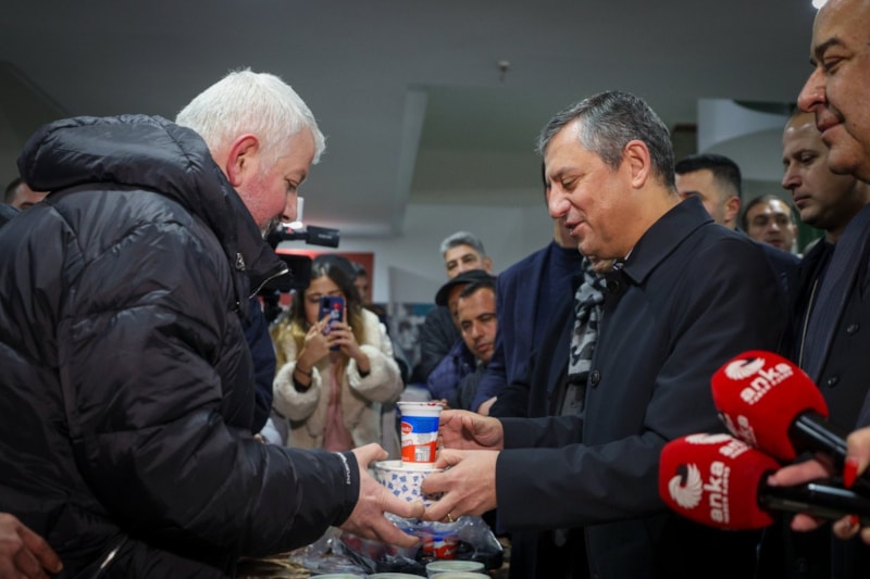 CHP Genel Başkanı Özgür Özel, cuma namazını Ankara Kocatepe Camii’nde kılarken namazın ardından beraberindeki heyetle birlikte vatandaşlara sade pilav ve ayran ikram etti.