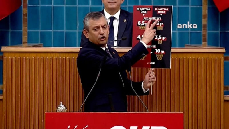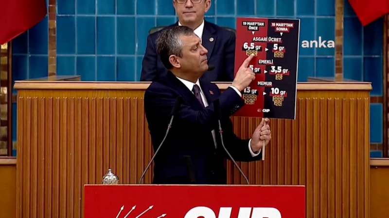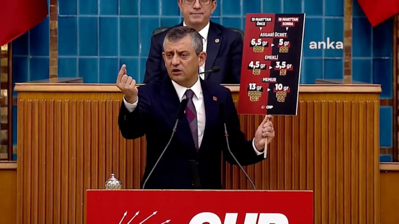 Grup toplantısında altın hesabı yapan Özgür Özel, "Asgari ücretli 6.5 gram altın alabiliyordu, 19 Mart'tan sonra bu 5 gram altına düştü. Emekli maaşı 4.5 gram altından 3.5 grama düştü" dedi. Özel, bu tablonun nedeninin ise Ekrem İmamoğlu'nun tutuklanması olduğunu söyledi.