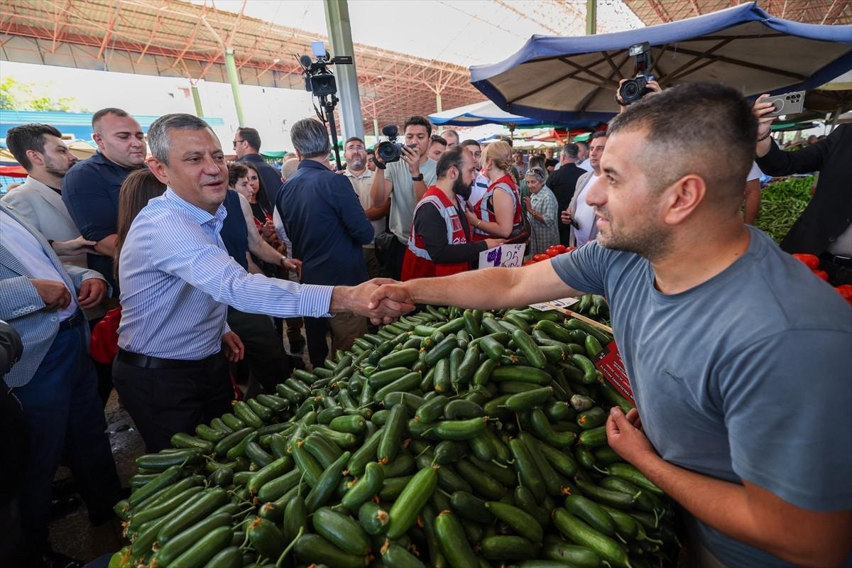 CHP Genel Başkanı Özgür Özel, Yenimahalle'deki semt pazarında esnafla bir araya geldi.