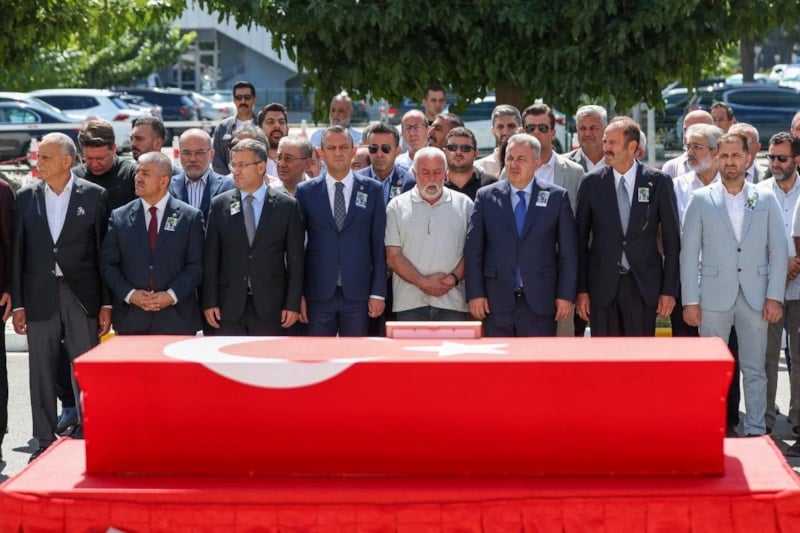 CHP Genel Başkanı Özgür Özel de, Türk Aktivist Ayşegül Ezgi Eygi için İzmir Adnan Menderes Havaalimanı’nda düzenlenen cenaze törenine katıldı.