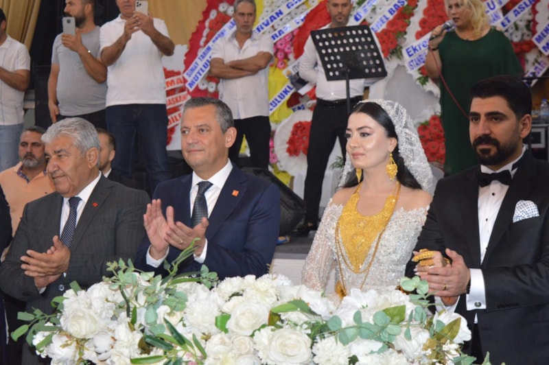 CHP Genel Başkanı Özgür Özel, partisinin Mardin eski İl Başkanı Mehmet Kılınçaslan'ın oğlu Azad Kılınçaslan ile Nurhan İlhan çiftinin düğününe katılarak, nikah şahitliği yaptı. Düğünde geline takılan altınlar ise düğünün önüne geçti.