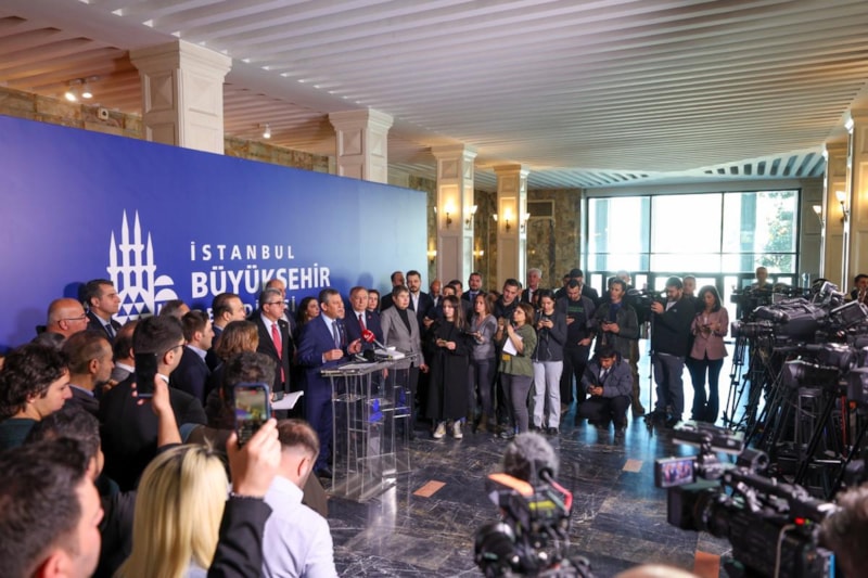Gözaltı sürecinin son gününde CHP Genel Başkanı Özgür Özel, Saraçhane’deki İBB binasında gazetecilere soruşturma sürecine ilişkin açıklamalarda bulundu.