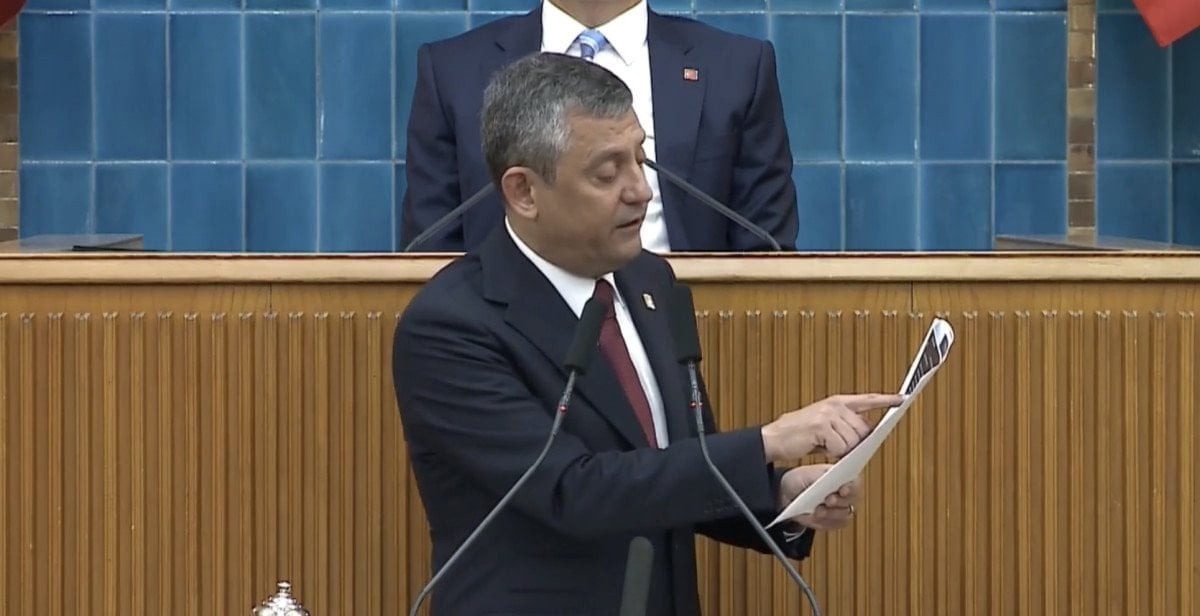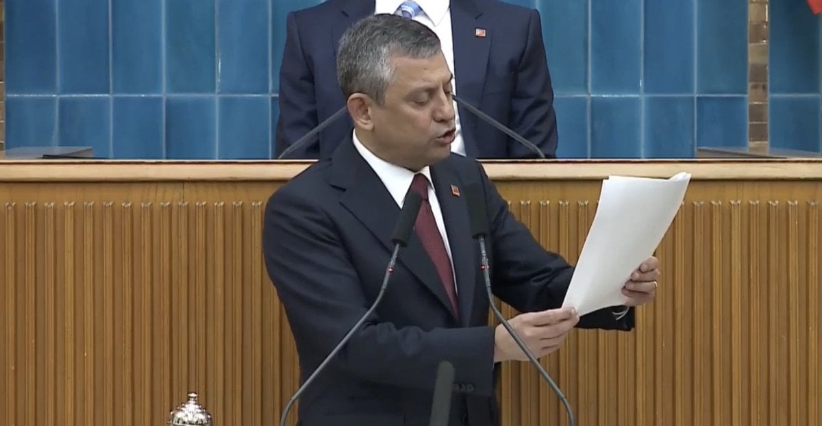 Bugün partisinin grup toplantısında konuşan Özgür Özel, Mesut Özarslan'a attığı mesajların yer aldığı kağıtla kürsüye geldi.