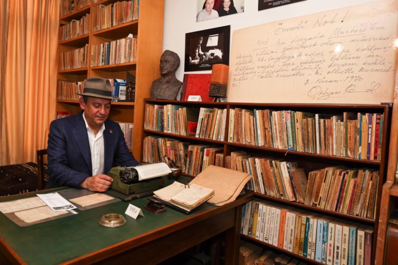 CHP Genel Başkanı Özgür Özel, İstanbul’daki Orhan Kemal Müzesi’ni ziyaret etti. Yazarın oğlu ve müzenin kurucusu Işık Öğütçü, Özel’e müzeyi tanıtırken Özel, yazarın şapkasını takarak daktilonun başına da geçti.
