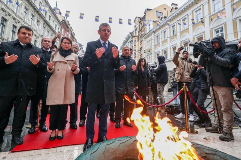 CHP Lideri Özgür Özel, Saraybosna’da II. Dünya Savaşı’nda ölen sivil ve askerlerin anısına Sonsuz Ateş Anıtı'na çiçek bırakarak dua etti.