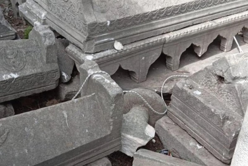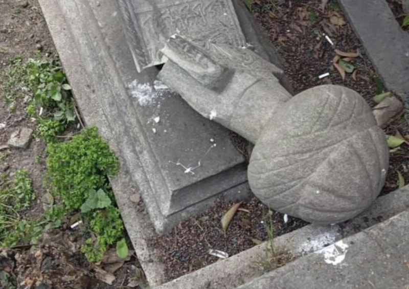 Parçalanan mezar taşlarının görüntüleri sosyal medyada büyük tepki çekti.