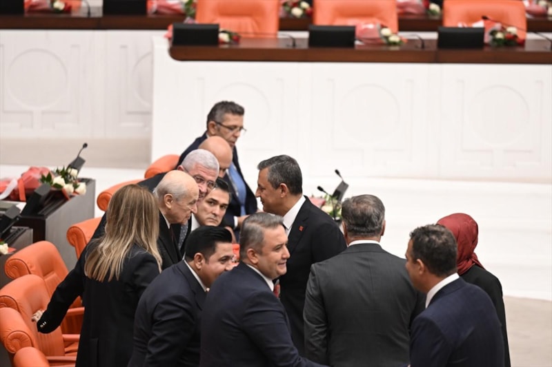 CHP Lideri Özgür Özel, TBMM'nin yeni yasama yılında MHP Lideri Devlet Bahçeli ile tokalaştı.