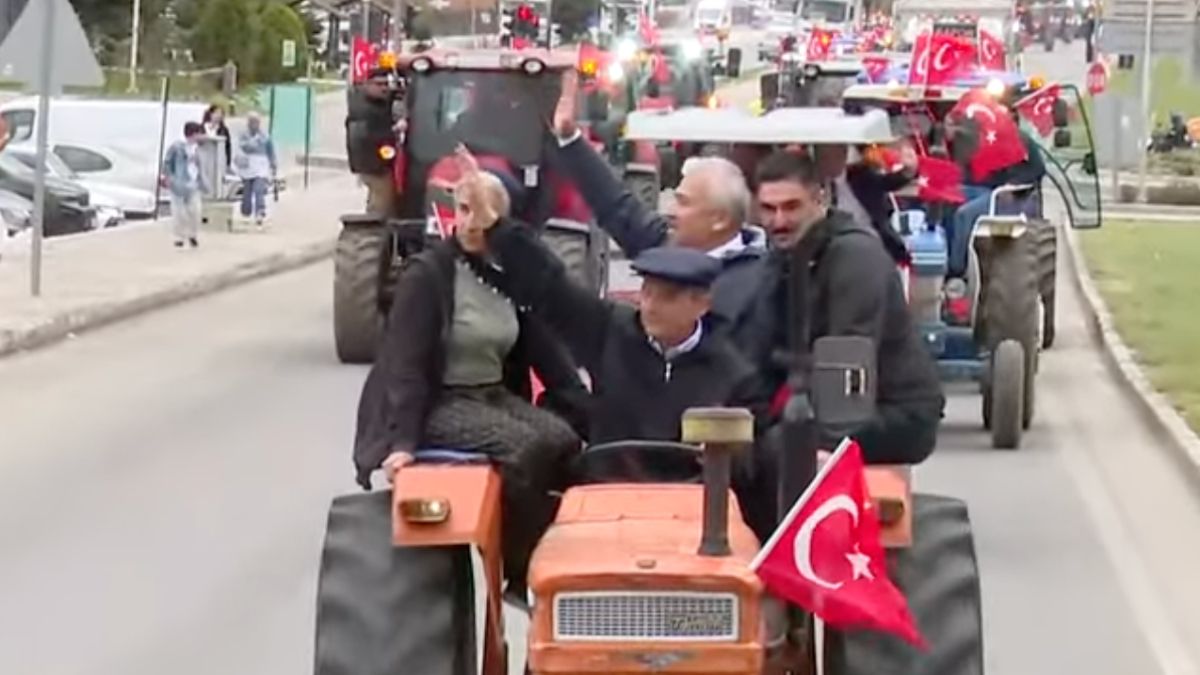 Çocukluğunun traktör üzerinde geçtiğini söyleyen Özel, 6 kilometrelik yolu traktör kullanarak geldi ve miting alanına ulaştı.